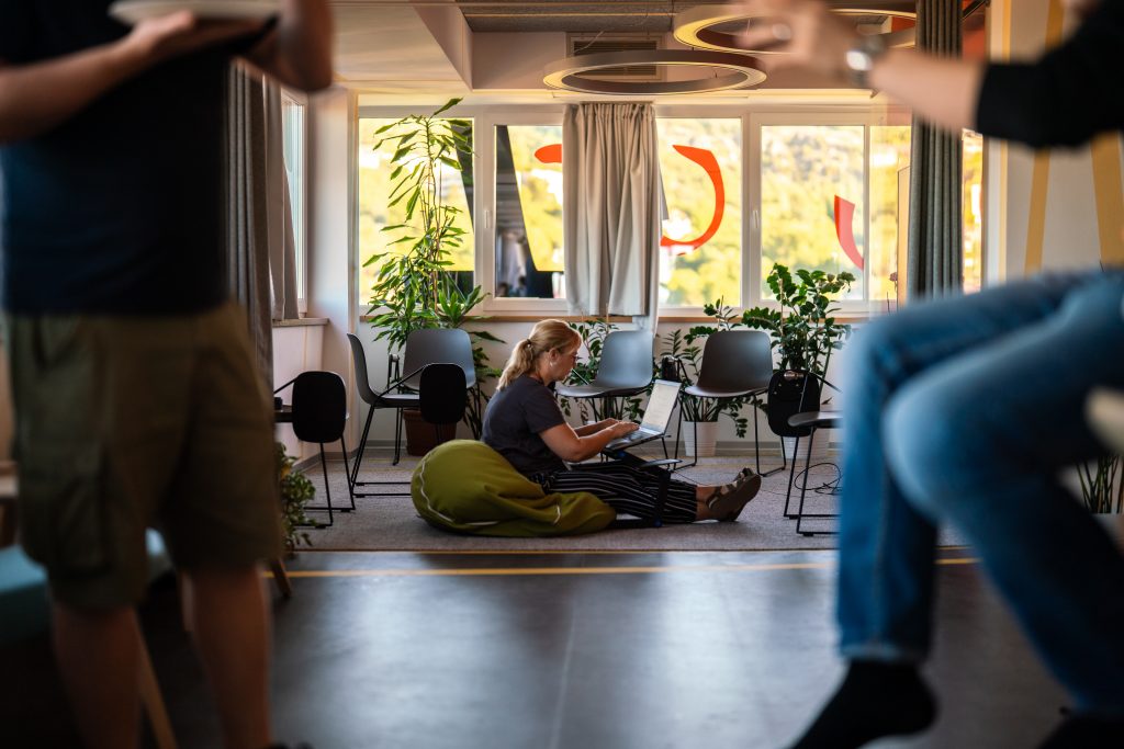 A Covid miatti kényszerű távmunka időszak lehetőséget teremtett arra, hogy teljesen újragondoljuk az irodánkat: egy hibrid teret alakítottunk ki, ahol elsősorban a találkozásoké és az együttműködésé a főszerep. Az új arculatunk is ezt sugallja: játékos, nyitott és kapcsolódásra hív.